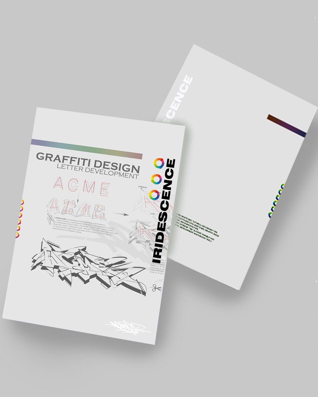 It starts by showing the principle design and continues with sketches, graffiti piece breakdown, part of the letters, colour theory, background tips
