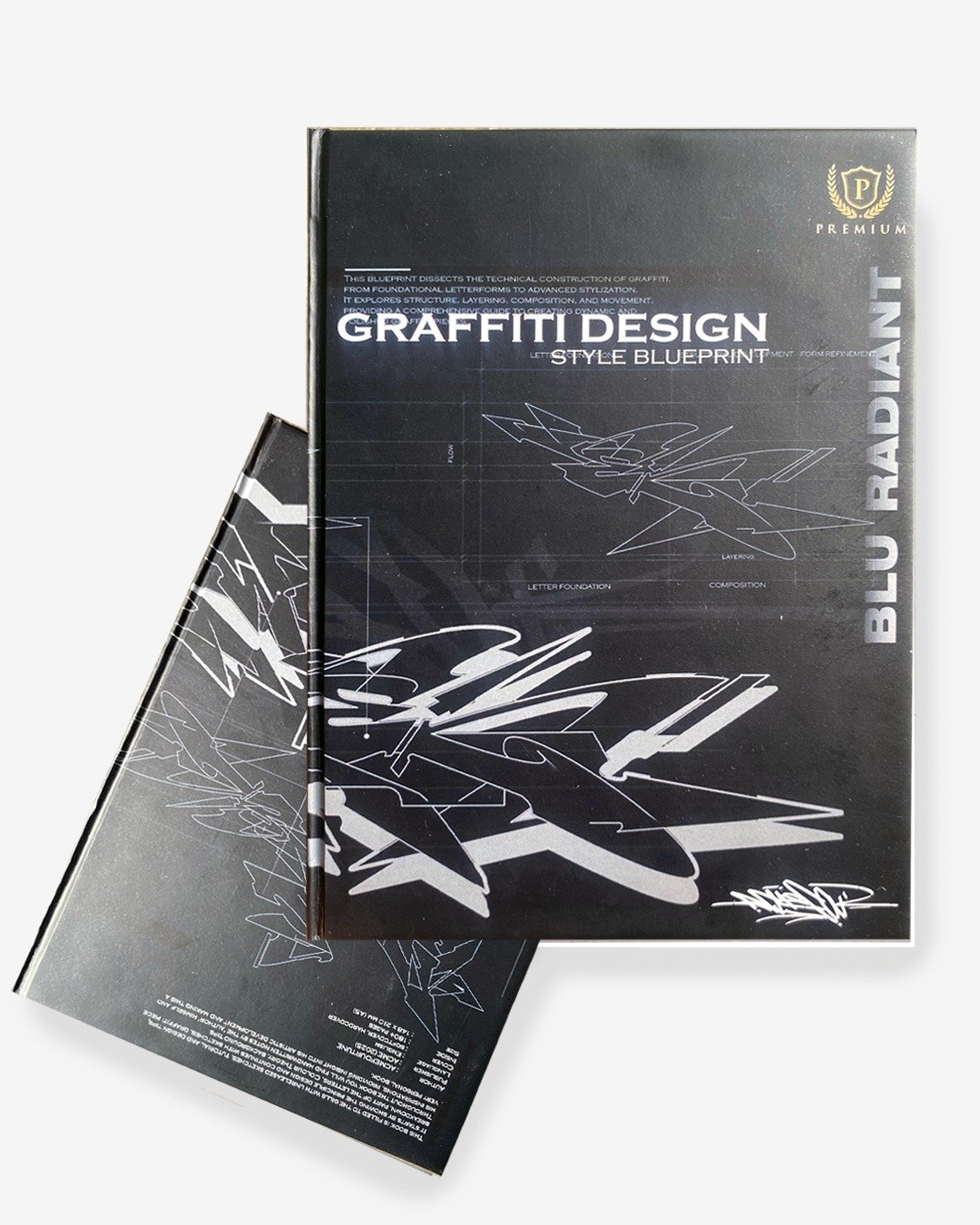 *Graffiti Design: Style Blueprint – Blu Radiant* is a book that technically dissects the construction of graffiti, from foundational letterforms to advanced stylization. This book explores structure, layering, composition, and movement in graffiti design, breaking down how each element connects to create a dynamic and unique style.